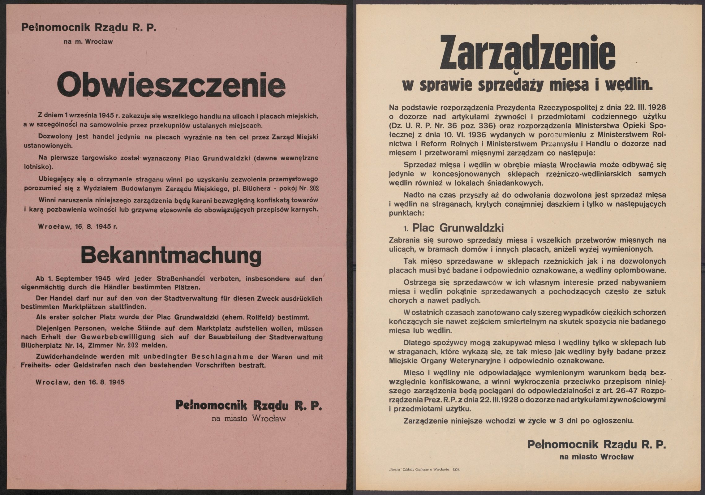 Zarząd Miejski w październiku 1945 roku wydaje zarządzenie, na mocy którego wszystkie osoby, które przybywają bez celu do miasta, które wałęsają się i nie pracują, można zabrać na roboty przymusowe. Na targowisko na placu Grunwaldzkim milicja dokonuje nalotów, podczas których włóczędzy, „wałęsające się ptaszki”, są zatrzymywani i wysyłani do różnego rodzaju prac. „Pożądanym byłoby również, by władze jak najprędzej zlikwidowały wszelkiego rodzaju stoliki do gry i koła szczęścia” – pisze wrocławski dziennik „Pionier".