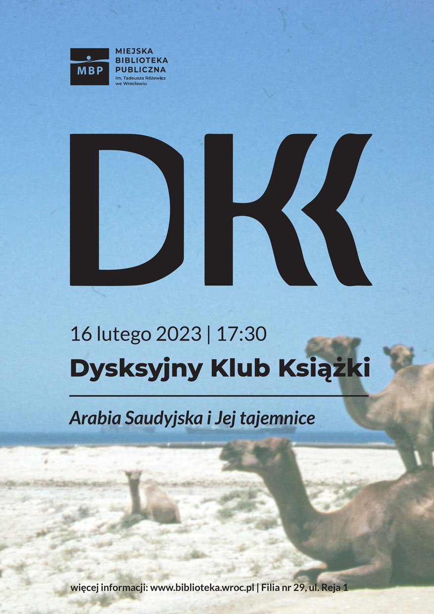 16 lutego o godzinie 17:30 zapraszamy do Miejskiej Biblioteki Publicznej filia nr 29 (przy ulicy Reja 1) na spotkanie Dyskusyjnego Klubu Książki: „Arabia Saudyjska i jej tajemnice”.