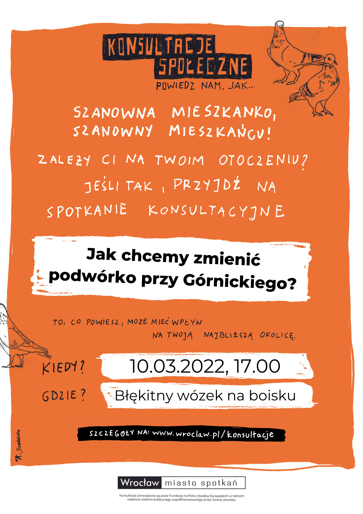 Drodzy sąsiedzi i drogie sąsiadki, w imieniu FEPS i Wrocław Rozmawia zapraszamy na spotkanie na temat koncepcji architektonicznej podwórka pomiędzy Górnickiego, Benedyktyńską, Sępa-Szarzyńskiego i Sienkiewicza.
