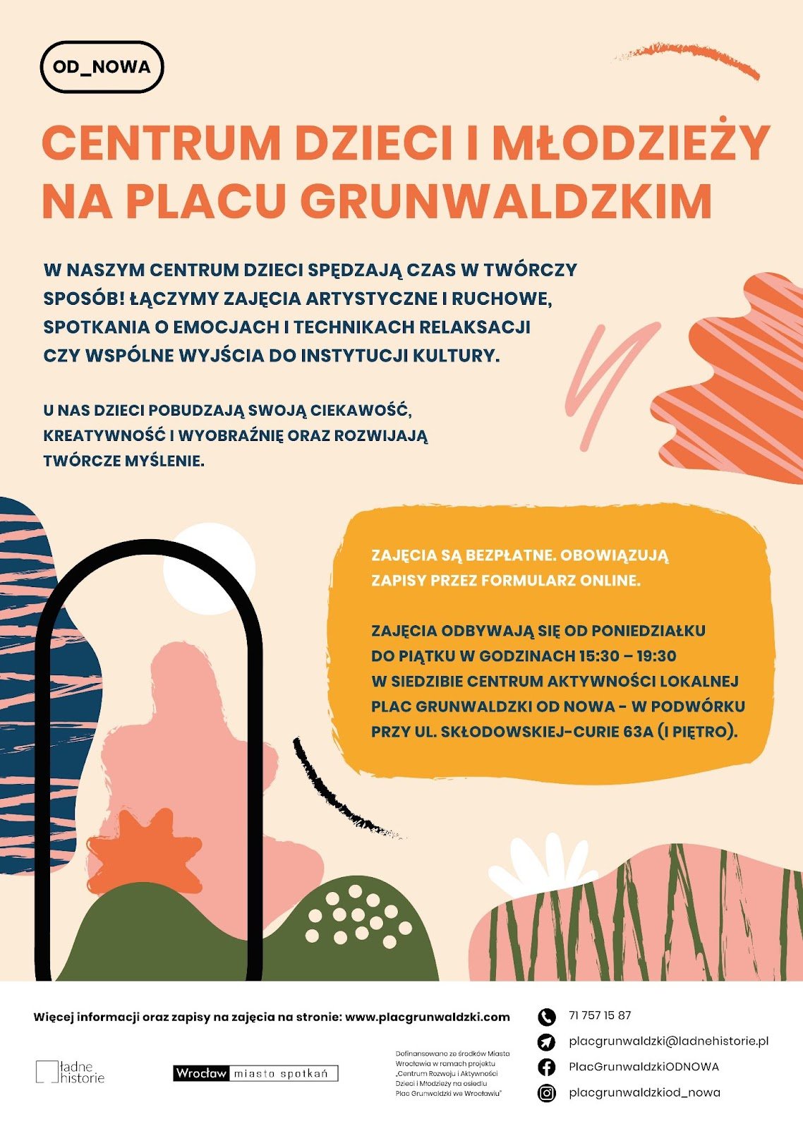 Projekt „Centrum Rozwoju i Aktywności Dzieci i Młodzieży na osiedlu Plac Grunwaldzki” współfinansowany jest ze środków Gminy Wrocław.