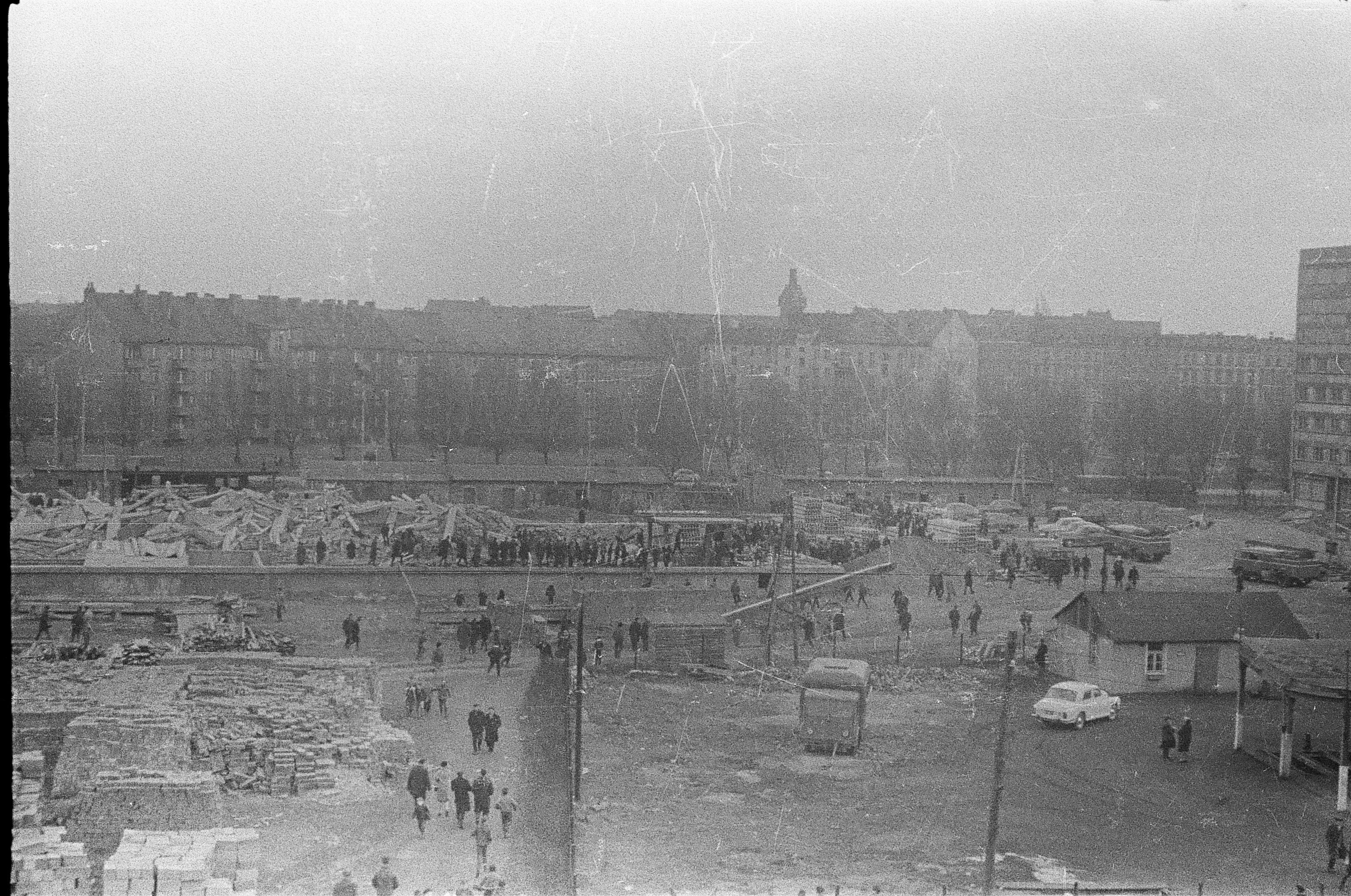M: Tak. Dopiero powstawały teki, politechnika, w latach 50., zrobiono na placu koło z betonu do tańca. Może parę razy bawili się tam ludzie, ale przecież to był beton, jak na nim tańczyć? Kiedy wyrównywano teren placu Grunwaldzkiego, mój brat przyniósł stamtąd do domu gipsową białą figurkę Jezusa bez dłoni. Długo była u nas ta figurka, może nawet nadal jest.